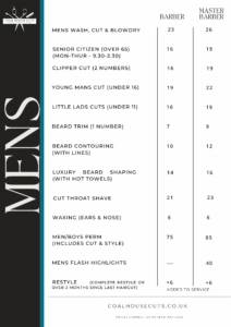 Mens Price List